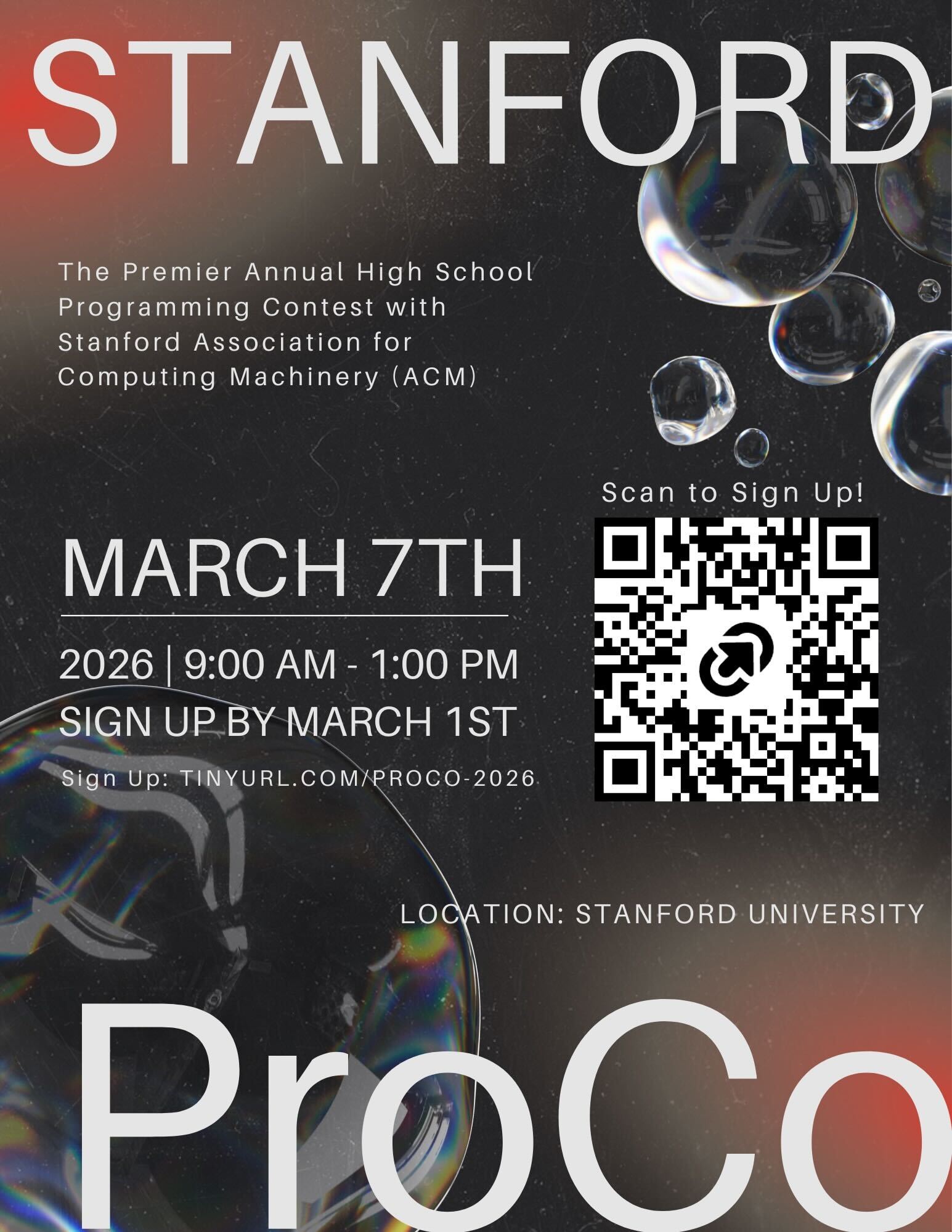 ProCo 2025 was just hosted on March 1st, 2025 by Stanford ACM. Keep in touch for the next one!